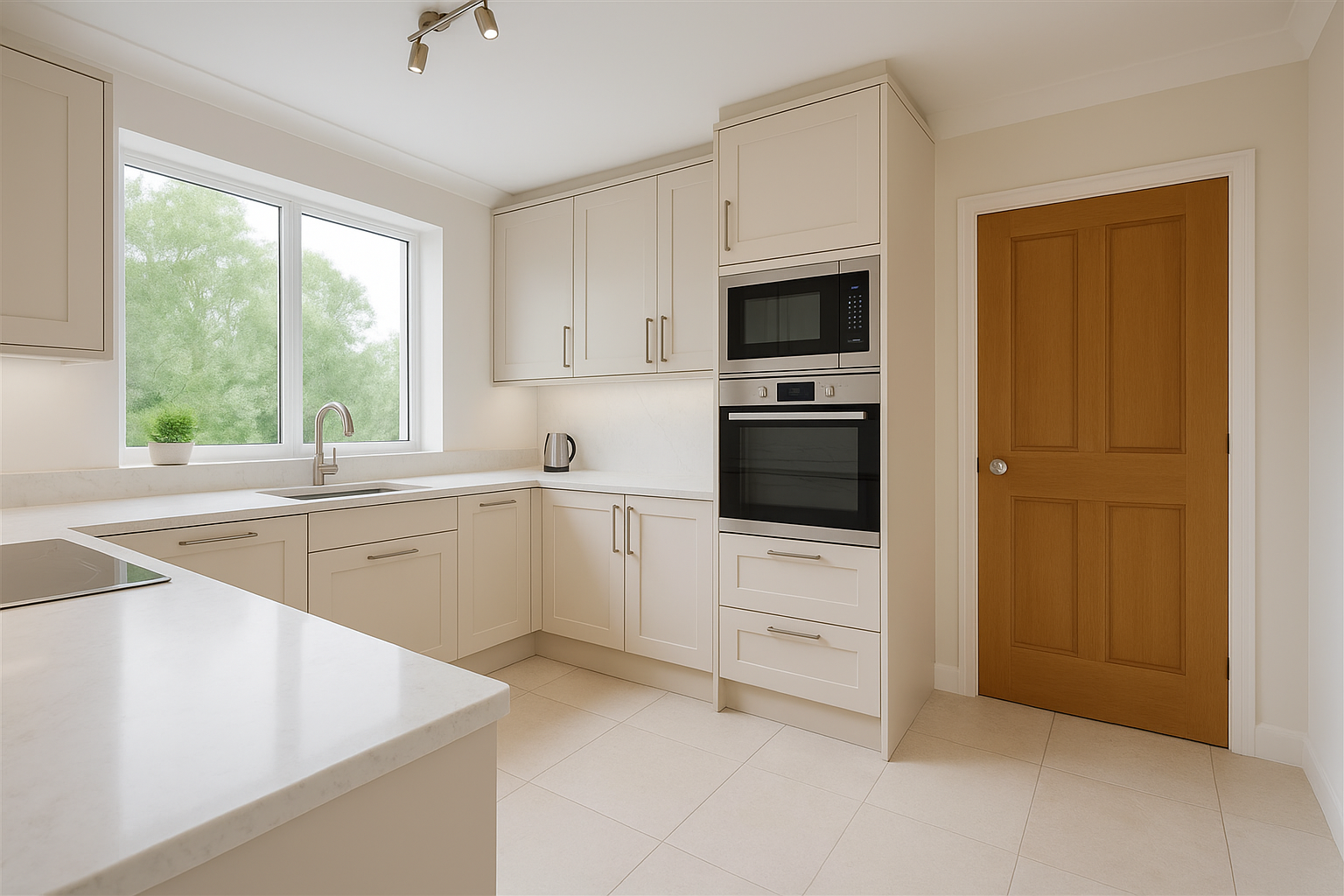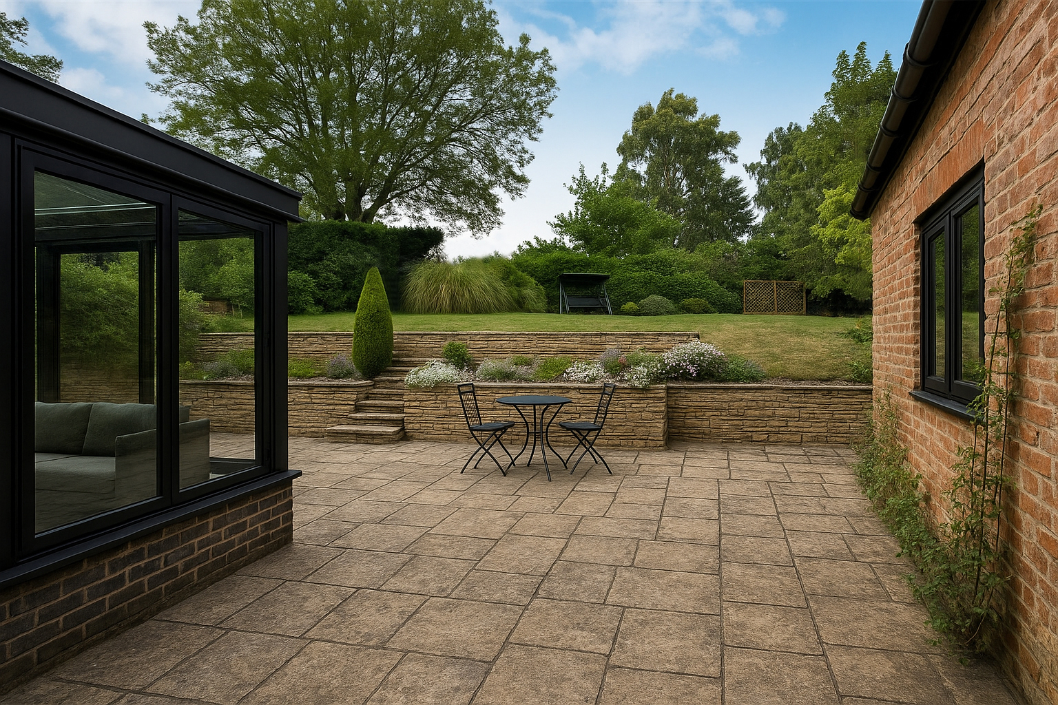 It needed bringing up to date and some redesigning to create a better flow of rooms and living spaces. This was a considerable sized plot with the floor space totalling 140 m2. The open plan lounge diner living space was reconfigured with a dividing wall to give a separate lounge and then a kitchen/ diner leading to the conservatory. There was a small office space that was returned into a single bedroom at the rear of the property. The interior was then rully renovated with all services being replaced. The garden area was landscaped as the rear was raised. This had a sweeping paved stair installed to take you up to the garden.